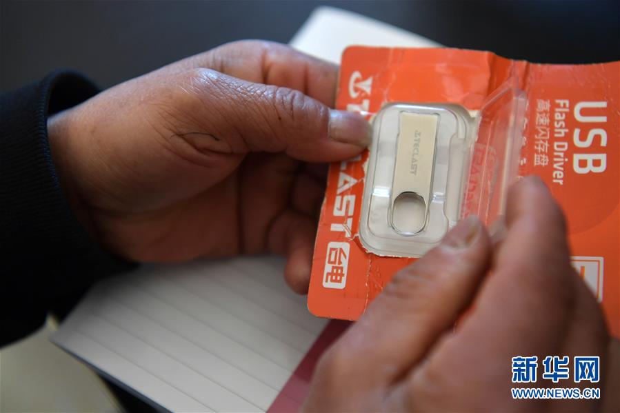 这个U盘是罗长石每天拷贝线上教学课程的工具(2月17日摄)。 新华社记者 彭昭之 摄