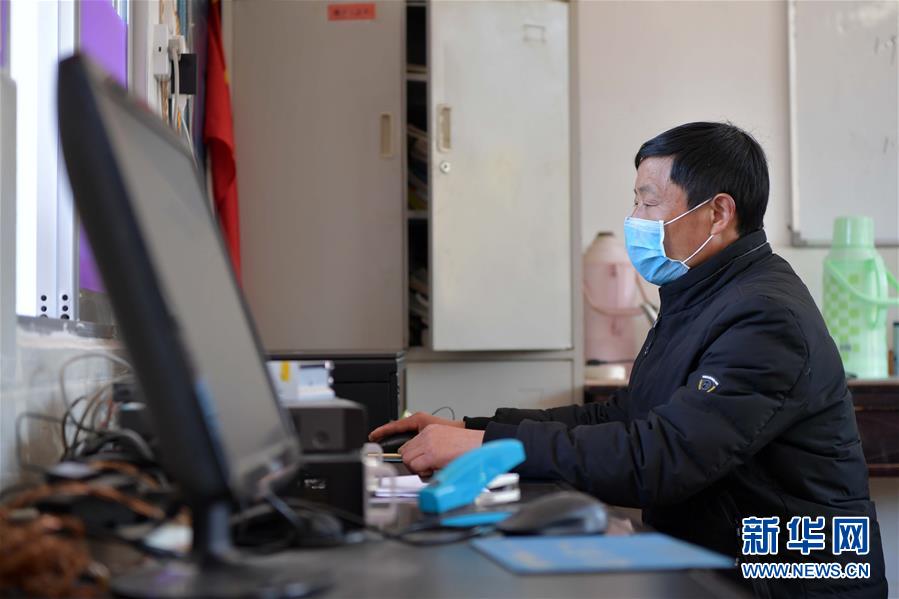 2月17日,在江西省万载县高村镇新竹村新竹小学,校长罗长石在边播边录当天的线上教学课程。 新华社记者 彭昭之 摄