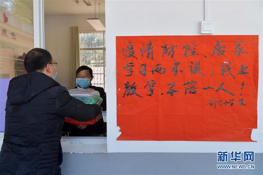 2月17日,在江西省万载县高村镇新竹村新竹小学,罗长石领取了新学期的书本,准备给学生们带去。 新华社记者 彭昭之 摄