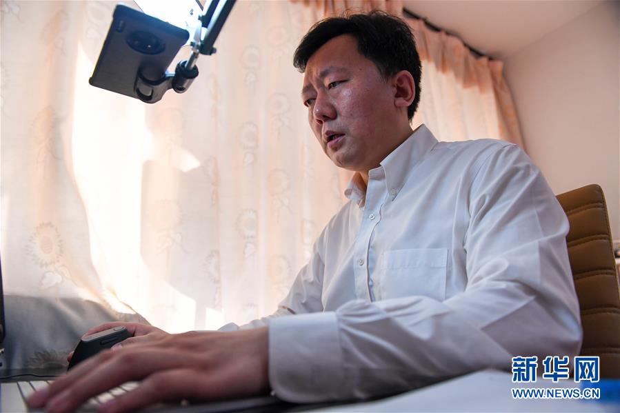 2月24日,东北师范大学附属中学物理教师付桐在进行线上教学。 当日,吉林省全面启动网上教学,通过互联网、电视、家庭电脑和智能终端等,开展在线授课(听课)、资源点播和线上辅导、讨论、答疑等教育教学活动。 新华社发(颜麟蕴摄)