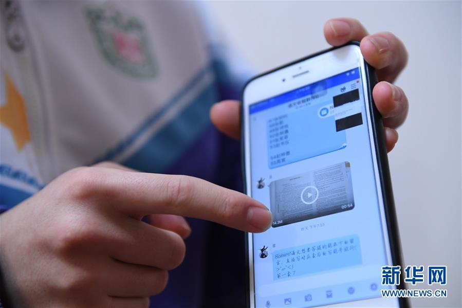 2月24日,东北师范大学附属中学学生徐铭君展示如何线上提交作业。 当日,吉林省全面启动网上教学,通过互联网、电视、家庭电脑和智能终端等,开展在线授课(听课)、资源点播和线上辅导、讨论、答疑等教育教学活动。 新华社发(颜麟蕴摄)