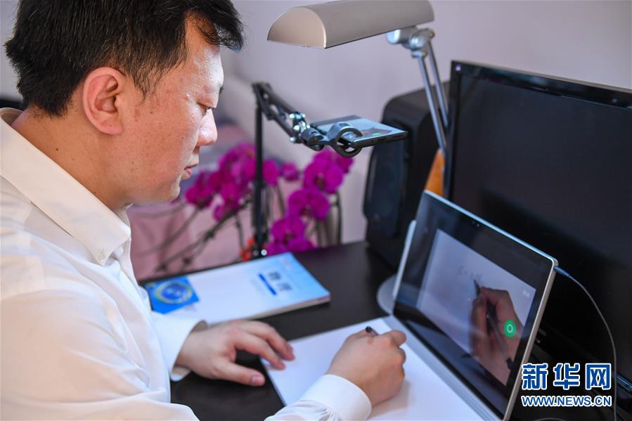 2月24日,东北师范大学附属中学物理教师付桐通过手机投屏书写教学板书。 当日,吉林省全面启动网上教学,通过互联网、电视、家庭电脑和智能终端等,开展在线授课(听课)、资源点播和线上辅导、讨论、答疑等教育教学活动。 新华社发(颜麟蕴摄)