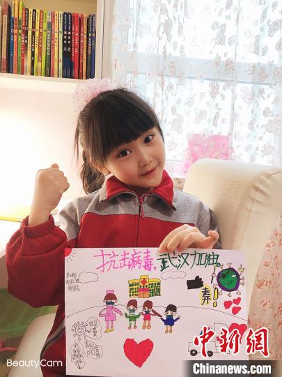 7岁的姚卓言上小学一年级,巴州森林消防支队二级指挥员姚方的女儿,绘画为战疫情助力。。 孙康康 摄