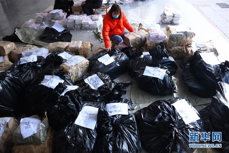 3月1日,宣恩县宝塔小学老师将教材打包准备派送。 近日,湖北省宣恩县各初中、小学将学生课本按照年级、乡村分配打包后送到学生手中,以确保居家学习学生的学习质量。 新华社发(王俊 摄)