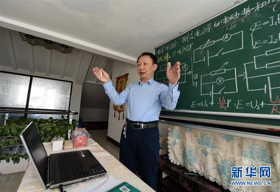 3月5日,呼和浩特市第十六中学高三物理教师呼斯楞通过手机直播的方式在家中进行线上教学。