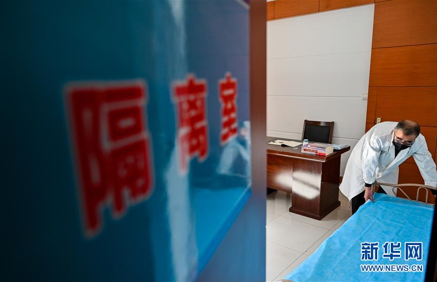 3月20日,呼和浩特市第三十五中学校医霍永平在学校隔离室整理床铺。 3月19日,内蒙古自治区教育厅发出通知,内蒙古全区初三、高三年级将在3月30日开学复课。呼和浩特市各中学提前部署,通过设置疫情防控办公室、隔离区、定时消杀、贮备防疫物资等工作,积极准备开学事宜。 新华社记者 连振 摄