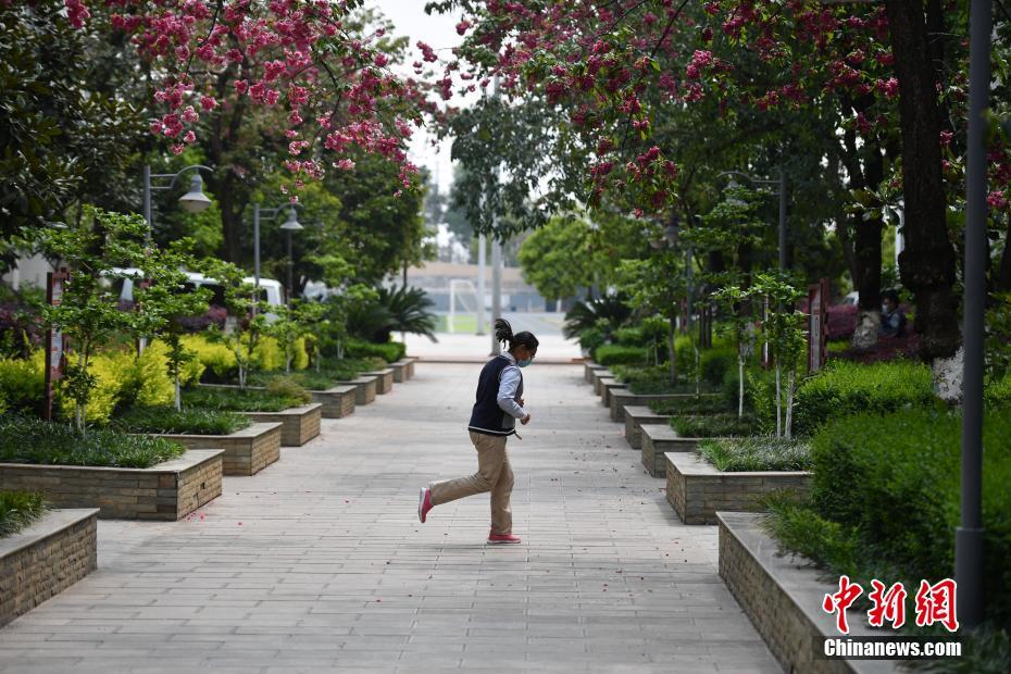 3月23日,云南省昆明市第一中学西山学校的学生在校园内活动。该校采取多种措施保障学生安全上课并有充足的体育锻炼时间,还进行新型冠状病毒防治测验,增强学生对新冠病毒的了解,提升防范意识。当天,云南省初三和高三年级正式开学。中新社记者 刘冉阳 摄