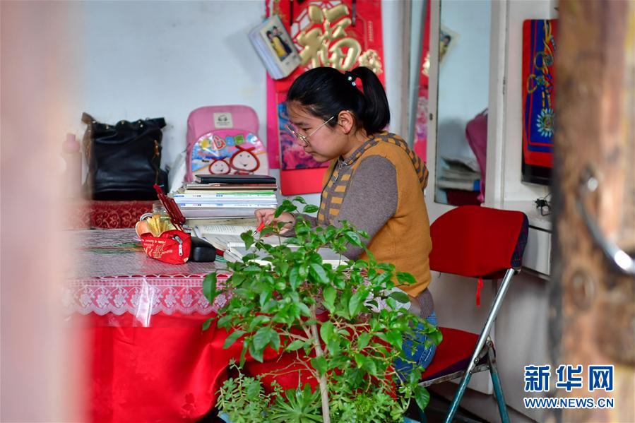 李彦昀在静乐县新开岭村的家里跟着网课学习(3月23日摄)。 新华社记者 曹阳 摄