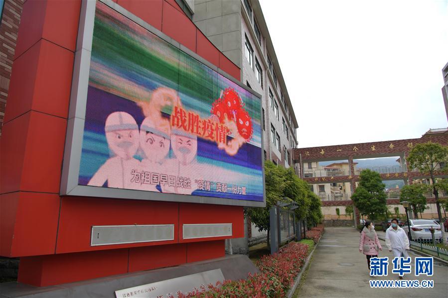 3月27日,在江西省南昌市湾里区第一中学内,疫情防控的宣传电子屏在进行测试,开学后会每天滚动播出,强化师生的防疫意识。 江西省各地高三、初三年级学生将于4月7日返校学习,各地学校目前正在进行防疫物资储备、校园各区域公共设施清洁消杀等工作,为开学复课做好准备。 新华社记者 彭昭之 摄