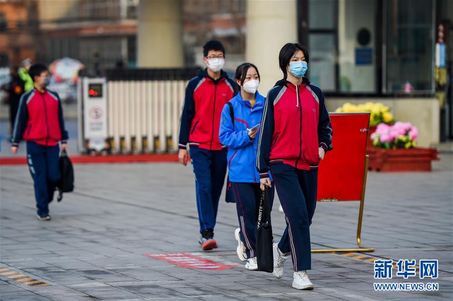3月30日,呼和浩特市第三十五中学初三年级学生进入学校。 当日,内蒙古自治区全区高三和初三年级开学复课。 新华社记者 连振 摄