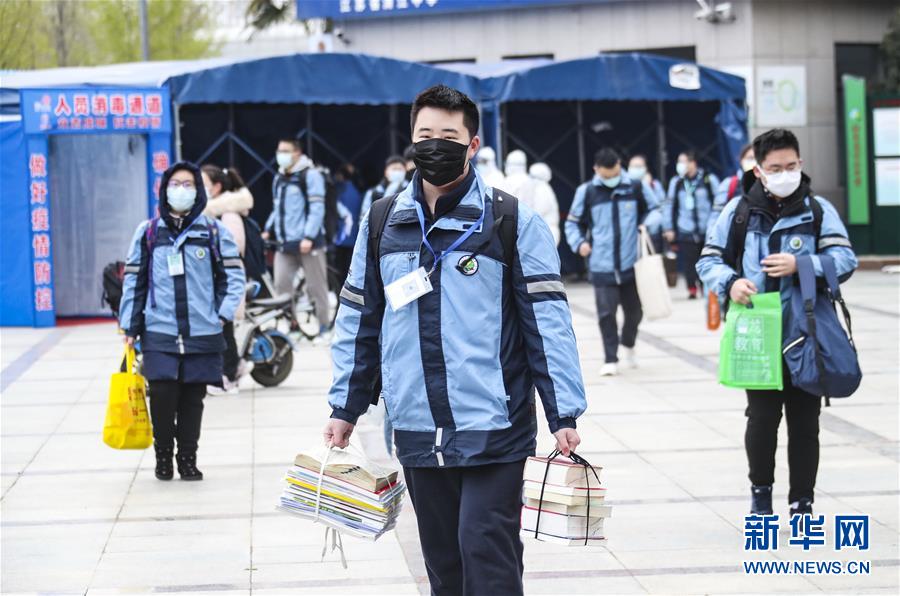 3月30日,在位于江苏淮安的江苏省清江中学,学生有序体检进入校园。 当日,江苏省高三和初三年级开学复课。 新华社发(赵启瑞 摄)