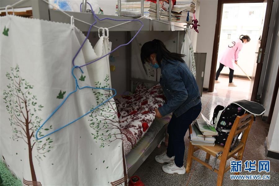 4月7日,在安徽省金寨第一中学,高三学生在宿舍里整理内务。新华社记者 张端 摄