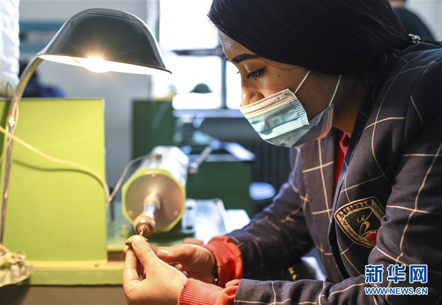 4月8日,在乌鲁木齐职业大学艺术学院,一名学生在雕塑课上学习雕刻技巧。新华社记者 王菲 摄