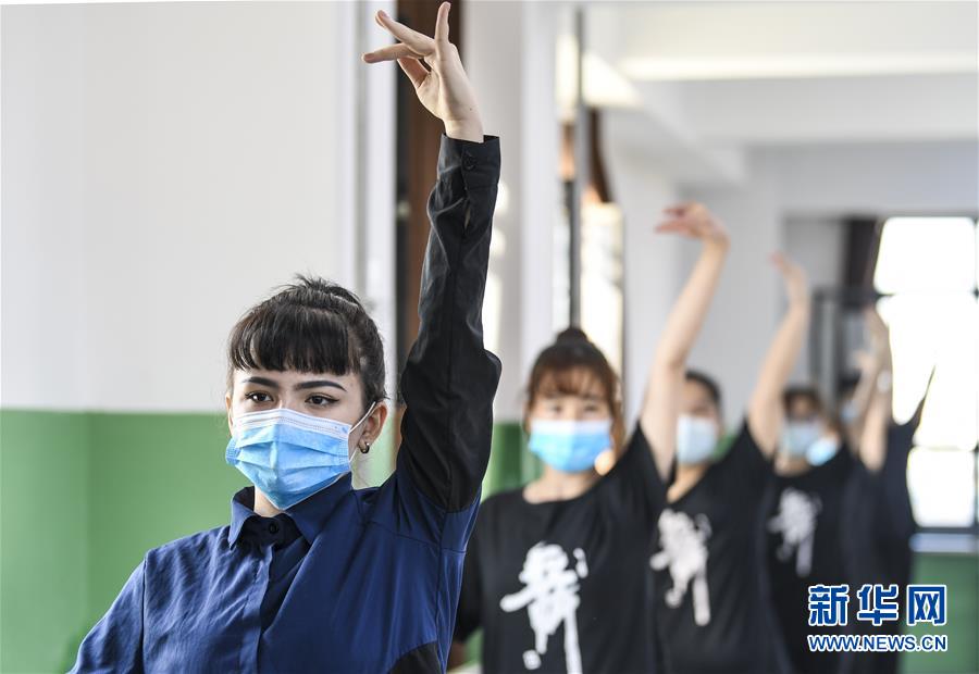 4月8日,在乌鲁木齐职业大学艺术学院,学生在舞蹈课上练习。新华社记者 王菲 摄