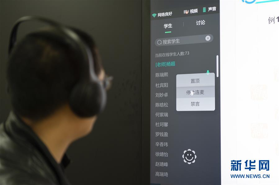4月10日,襄阳四中一名老师在教室里利用多媒体设备给学生上网课。 近日,随着疫情防控形势持续好转,湖北省襄阳市各学校开展消杀防疫等一系列措施,为复学做准备。襄阳四中根据教学实际情况,在做好校园防疫和老师防护措施的前提下,开始组织部分教师走进教室给学生们上网课。 虽然学生都在家中在线上课,教室略显空荡,但老师们依然声情并茂、认真授课。 新华社发(谢剑飞 摄)