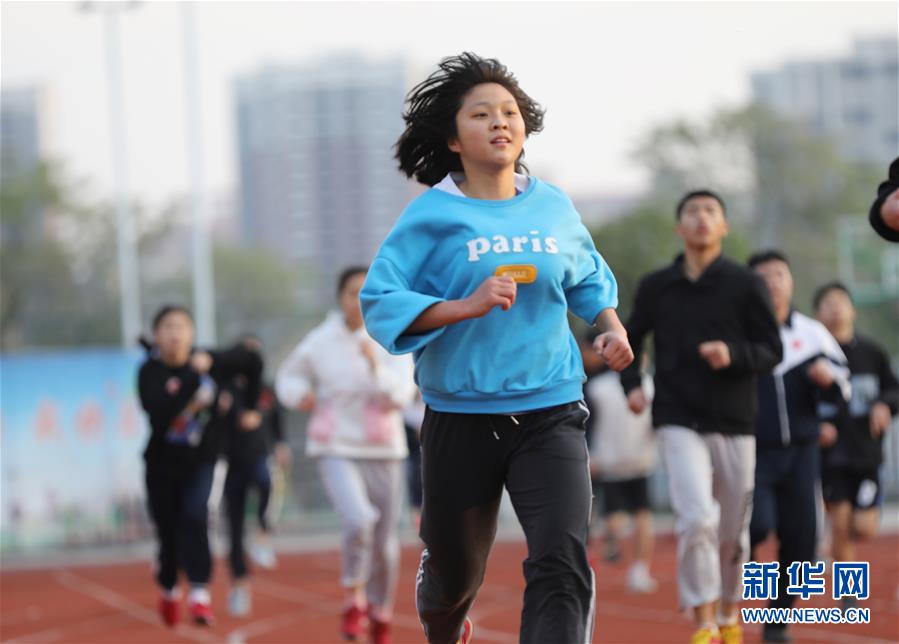 4月13日,在湖南永州道县第一中学,学生在田径场锻炼。新华社发(何红福 摄)