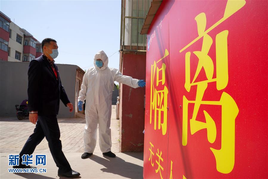 4月21日,工作人员模拟演练将“发热学生”安置在隔离区。 当日,河北南宫中学举行返校开学防疫演练,模拟入校、应急处置、用餐、入住宿舍等环节,进一步熟练疫情防控流程,保障安全有序复课。据悉,河北省普通高中毕业年级将于4月23日开学。 新华社记者 牟宇 摄