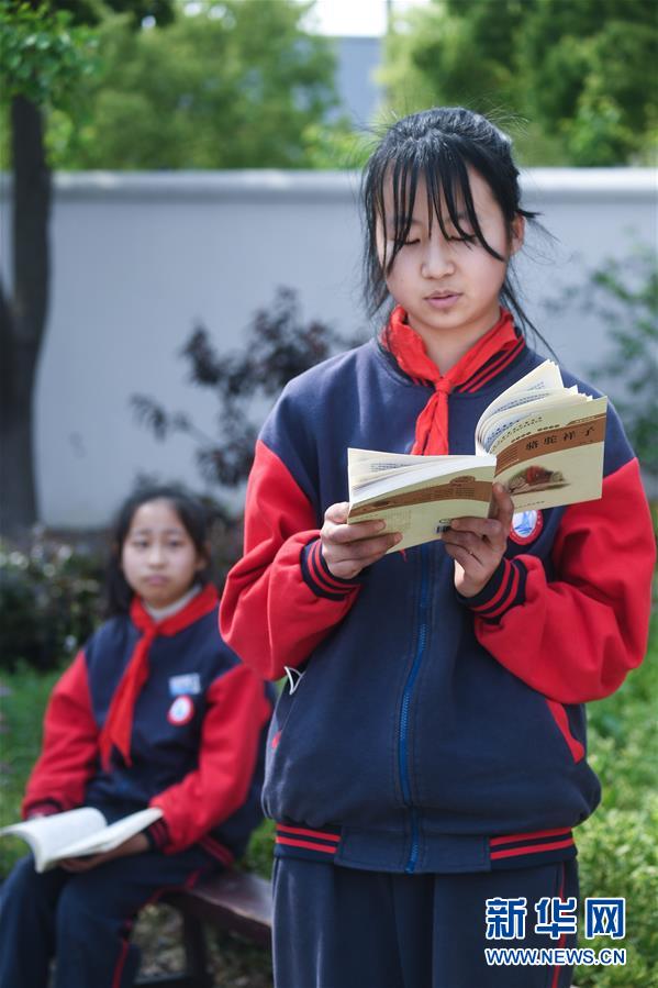 4月22日,学生们在校园的绿化角进行名著片段分享读书会,分享在假期阅读的名著中的片段。 当日,浙江省湖州市织里镇轧村中学举行复课以来首次“校园读书会”,开展书签制作展示、征文交流、名著精彩片段分享等系列活动,营造乡村学校的校园文化氛围,让学生养成良好的阅读与学习习惯。 新华社记者 徐昱 摄