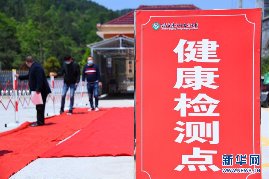宣恩县清江外国语学校校门口设置的健康检测点(4月24日摄)。新华社发(王俊 摄)