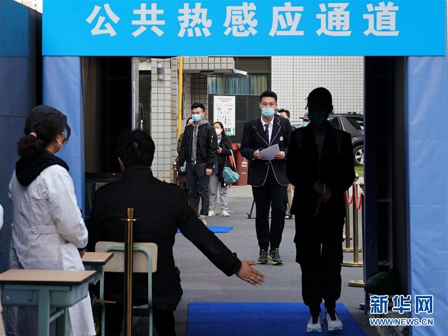 4月27日,华东师范大学第一附属中学的高三学生通过公共热感应通道入校。 当日,上海高三年级、初三年级学生返校开学。 新华社记者 刘颖 摄