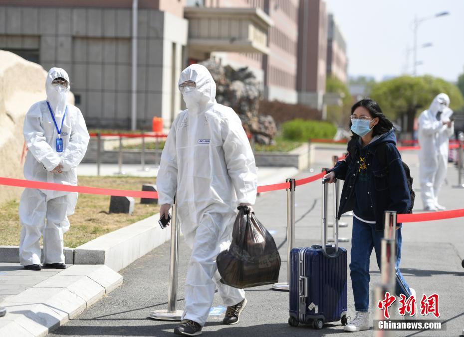5月7日,长春中医药大学,新学期返校的第一批学生陆续抵达学校,拉开了吉林省高校返校复学的帷幕。当天,长春中医药大学分别在机场、火车站设立了接站点。返校学生均需持返校证明、身份证、校园一卡通或学生证等证件前往接站点进行体温检测和身份核验,通过检测后方可统一乘坐校车返回学校。中新社记者 张瑶 摄