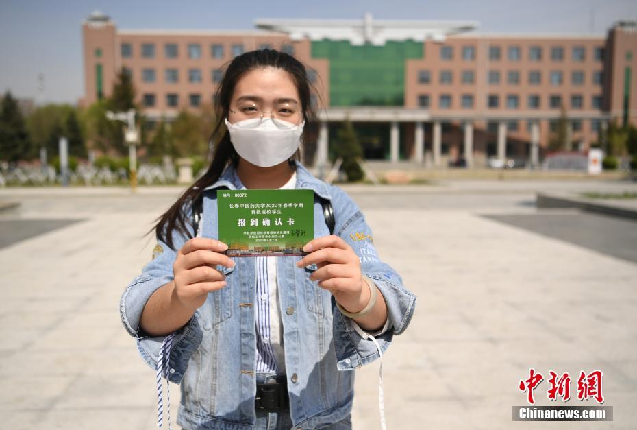 一名学生展示报到确认卡。中新社记者 张瑶 摄