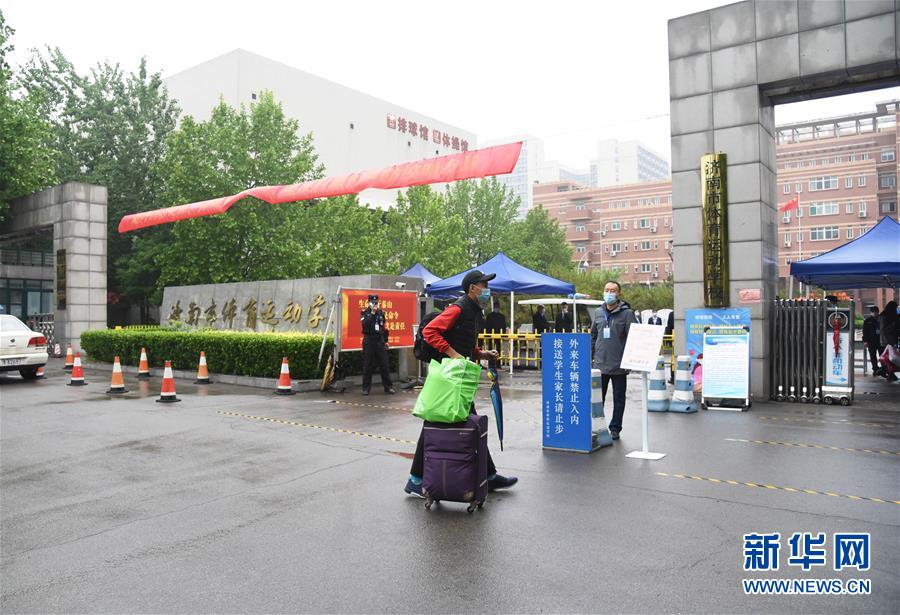 5月8日,一名学生走进山东省济南市体育运动学校。 当日,山东省济南市体育运动学校初中毕业年级正式复学复课。为保障师生健康安全和复学复课顺利进行,学校不仅要求进行行李消杀、体温检测和健康码出示,还要求学生上课和用餐时间隔就座、间隔行走,在防控疫情的基础上有序复学复课。 新华社记者王凯摄
