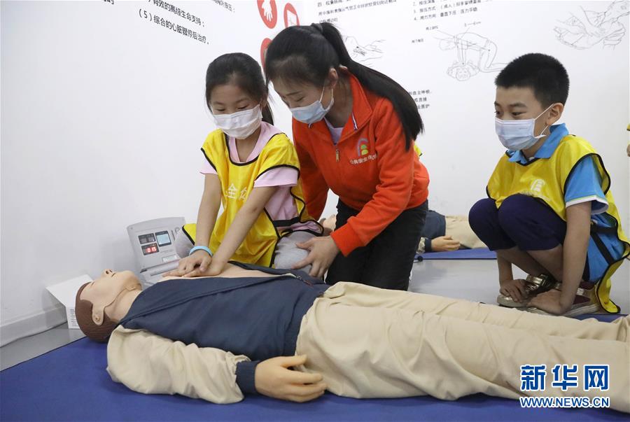 5月11日,在石家庄公共安全体验馆,讲解员给小朋友讲解心肺复苏抢救模拟体验。 在5月12日“全国防灾减灾日”来临之际,河北省石家庄市桥西区开展“儿童防灾总动员”主题活动,五十四家社区的小朋友在石家庄公共安全体验馆了解自然灾害相关知识,学习在危险中迅速逃生、自救、互救的基本方法。 新华社发(梁子栋 摄)