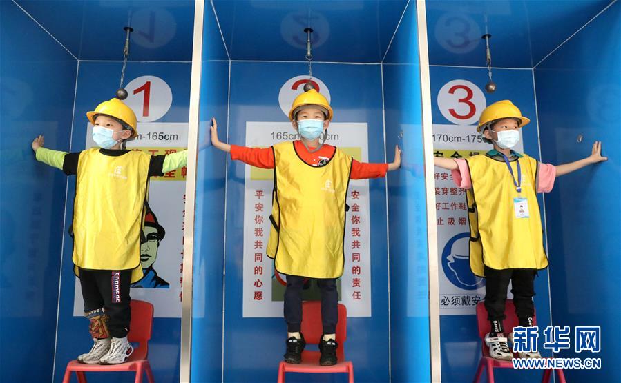 5月11日,在石家庄公共安全体验馆,小朋友在进行安全帽撞击体验。 在5月12日“全国防灾减灾日”来临之际,河北省石家庄市桥西区开展“儿童防灾总动员”主题活动,五十四家社区的小朋友在石家庄公共安全体验馆了解自然灾害相关知识,学习在危险中迅速逃生、自救、互救的基本方法。 新华社发(梁子栋 摄)