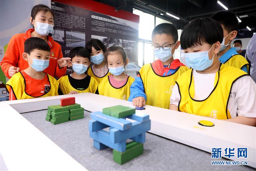 5月11日,在石家庄公共安全体验馆,小朋友通过演示装置了解各震级对不同建筑类型的破坏力。 在5月12日“全国防灾减灾日”来临之际,河北省石家庄市桥西区开展“儿童防灾总动员”主题活动,五十四家社区的小朋友在石家庄公共安全体验馆了解自然灾害相关知识,学习在危险中迅速逃生、自救、互救的基本方法。 新华社发(梁子栋 摄)