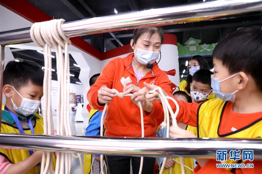 5月11日,在河北省石家庄公共安全体验馆,讲解员为小朋友讲解系逃生安全绳的方法。 在5月12日“全国防灾减灾日”来临之际,河北省石家庄市桥西区开展“儿童防灾总动员”主题活动,五十四家社区的小朋友在石家庄公共安全体验馆了解自然灾害相关知识,学习在危险中迅速逃生、自救、互救的基本方法。 新华社发(梁子栋 摄)