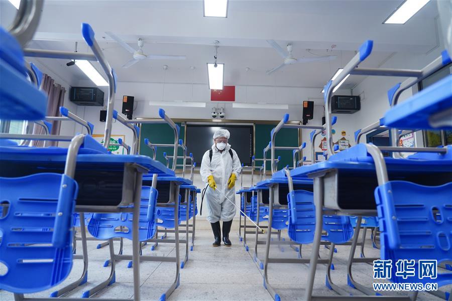 5月18日,江西南昌市各小学、幼儿园即将全面返校(园)。为保障孩子们的健康,当地各小学正在进行防疫物资的储备并进行校园各区域公共设施的全面消杀工作。