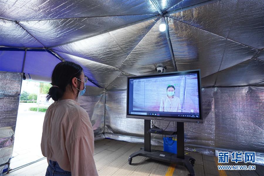 5月13日,工作人员在南昌市红谷滩新区碟子湖学校测试体温监控摄像头。新华社记者 周密 摄
