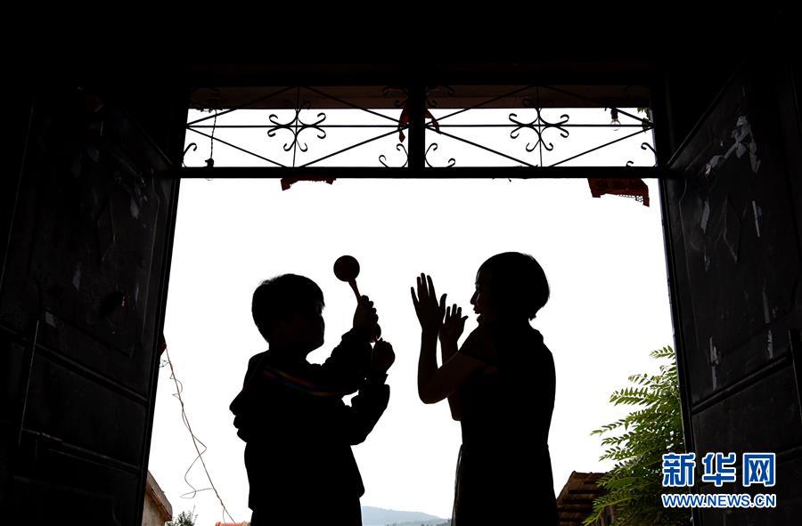 在山东省淄博市沂源县西里镇曹宅村,送教老师(右)为一名残疾孩子辅导音乐课程(2019年7月13日摄)。 新华社发(赵东山 摄)