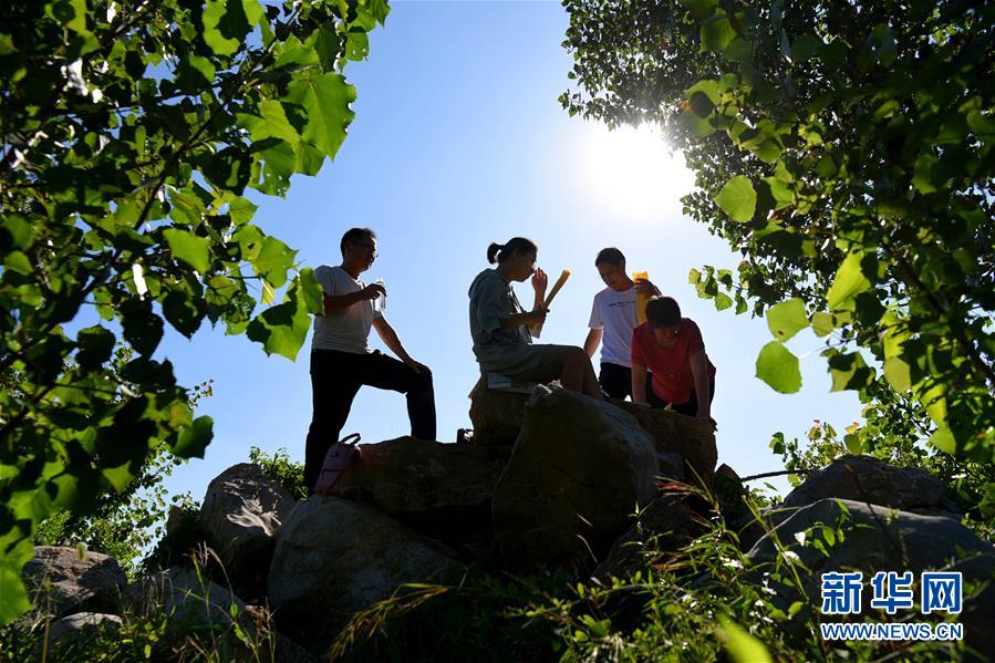 在山东省淄博市沂源县鲁村镇桃花山村,几名送教老师聚在一起吃午饭(2019年8月29日摄)。新华社发(赵东山 摄)