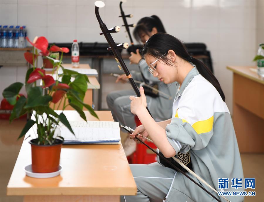 5月22日,泸溪县第五中学的学生在上二胡课。 泸溪县第五中学位于湖南省湘西土家族苗族自治州泸溪县武溪镇,是一所农村普通完全中学。学校自2006年起免费开设各类艺术培训课,培养农村学生的艺术兴趣、专业特长。 新华社记者 薛宇舸 摄
