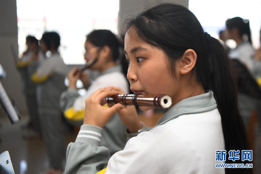 5月22日,泸溪县第五中学的学生在练习演奏笛子。 泸溪县第五中学位于湖南省湘西土家族苗族自治州泸溪县武溪镇,是一所农村普通完全中学。学校自2006年起免费开设各类艺术培训课,培养农村学生的艺术兴趣、专业特长。 新华社记者 薛宇舸 摄