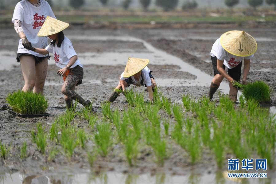 5月24日,小朋友与家长在稻田里参加亲子插秧比赛。 当日,十余名小朋友在家长的带领下来到浙江省湖州市吴兴区八里店镇尹家圩粮油植保农机专业合作社的稻田中,参加亲子插秧、稻田捉鱼等农事体验活动。 新华社记者 黄宗治 摄