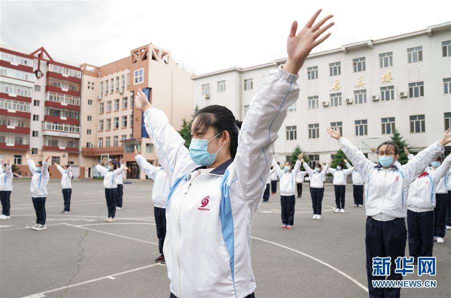 5月25日,黑龙江省实验中学毕业年级学生在操场上进行课间操活动。新华社记者王松摄