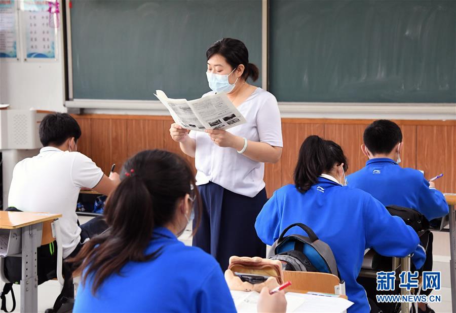 5月28日,北京市第十八中学的初三年级学生在上课。北京市第十八中学共有初三年级学生340余名,学校在做好初三年级学生中考文化课备考的同时,加强学生心理及身体素质的锻炼,以最好的精神状态备战中考。 据悉,2020年北京中考报名人数为7.5万人,比去年增加25%。 新华社记者 任超 摄