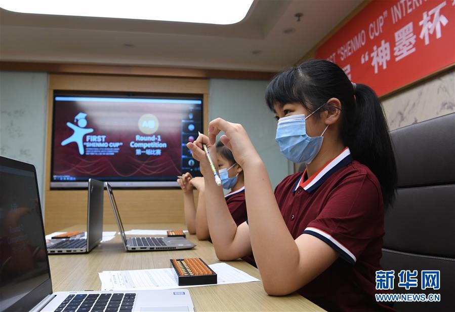 5月30日,小选手在首届“神墨杯”线上心算小博士国际争霸赛北京考场参赛。 当日,首届“神墨杯”线上心算小博士国际争霸赛开赛,来自中国、新加坡、荷兰、尼日利亚等13个国家的1500余名学习珠心算的小选手通过网络展开比拼。 珠心算由我国传统珠算发展而来,计算者将算盘在大脑中绘出影像,在“心中”完成珠算运算。 新华社记者 马宁 摄