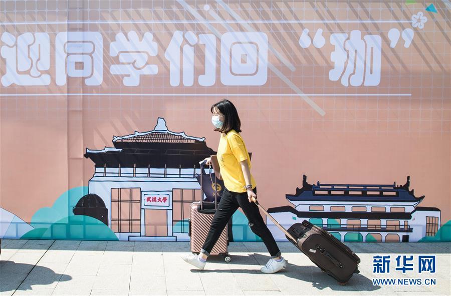 6月8日,在武汉大学,返校学生步入校园。 6月8日起,武汉大学、华中科技大学、武汉理工大学、华中师范大学等多所武汉高校迎来首批返校毕业生。