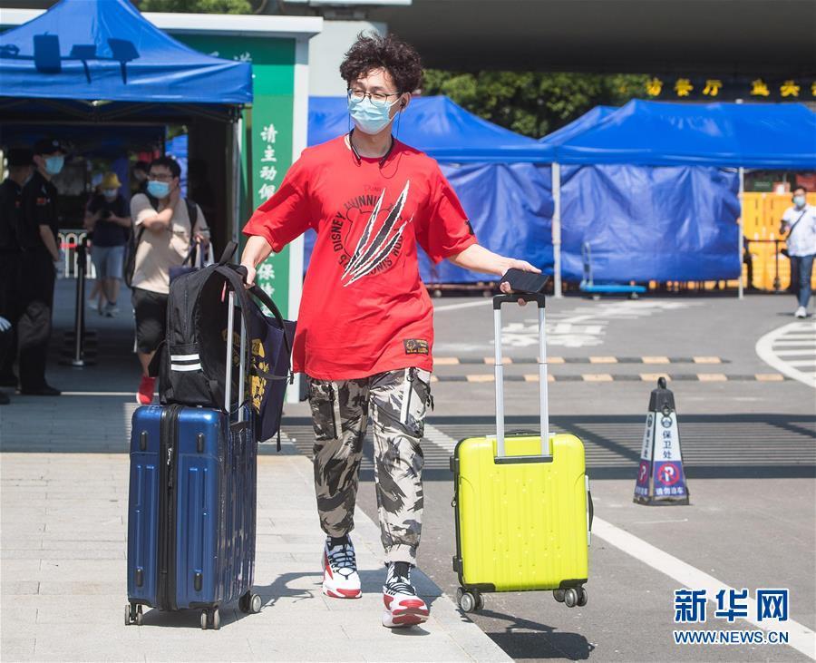 6月8日,在武汉大学,返校学生步入校园。 6月8日起,武汉大学、华中科技大学、武汉理工大学、华中师范大学等多所武汉高校迎来首批返校毕业生。