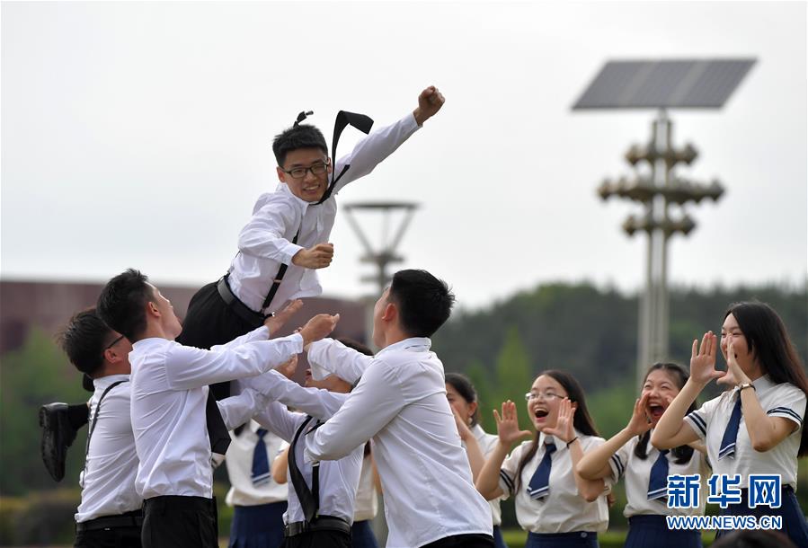 在南昌大学校园内,学子们一起欢呼,拍毕业照留念(6月10日摄)。 又到一年毕业季,在南昌大学校园,学子们一起拍摄毕业照,纪念自己的青春年华,和校园、师长、同学们道别。 新华社记者 彭昭之 摄