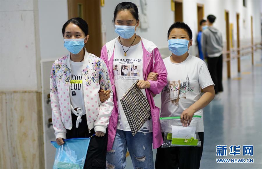 6月20日,上午的考试结束后,视障学生考场的低视力考生和盲人考生相互扶持着步出考场。 当日,重庆2020首场高等特殊教育招生考试在重庆市特殊教育中心开考。来自广东、四川、云南、重庆等18个省(自治区、直辖市)的116名聋哑考生、低视力考生、盲人考生等参加了本次长春大学高等特殊教育招生考试重庆考场的残疾人单招考试。 新华社记者 刘潺 摄