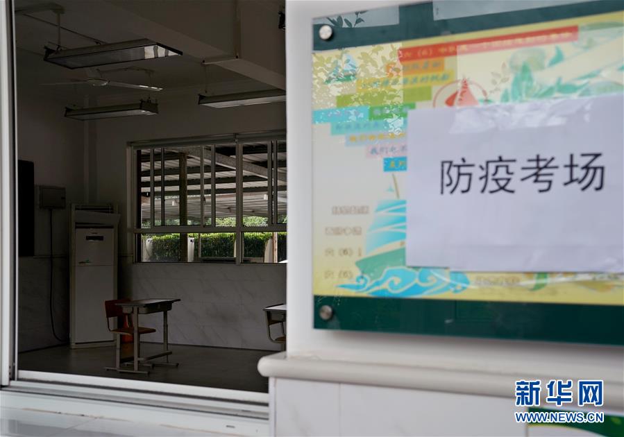 6月27日,上海市闵行区莘松中学考点内设置的防疫考场,考试进行中如有考生出现发热或不适等,将移至防疫考场。 当日,2020年上海市初中毕业统一学业考试开考。上海市各考点落实多项措施,筑牢防疫“安全墙”。考生需提前签署《考生考试安全承诺书》,进出考点考场须佩戴口罩,并接受防疫安全检查。 新华社记者 刘颖 摄