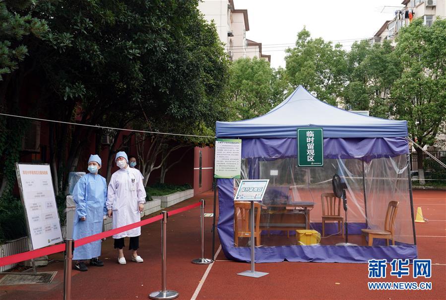 6月27日,上海市闵行区莘松中学考点中设置的“临时留观区”,入校时体温过高的考生将在此留观。 当日,2020年上海市初中毕业统一学业考试开考。上海市各考点落实多项措施,筑牢防疫“安全墙”。考生需提前签署《考生考试安全承诺书》,进出考点考场须佩戴口罩,并接受防疫安全检查。 新华社记者 刘颖 摄