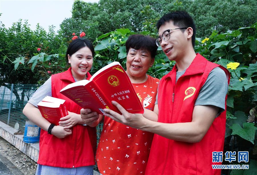 7月4日,小浦镇党员志愿者在中山村进行民法典基层宣讲活动。 近期,浙江省长兴县小浦镇开展法治教育“进乡村、进家庭、进学校”活动。基层党员志愿者成为了乡村法治“宣讲员”,通过视频教育、入户宣传、集中宣讲等形式,引导老百姓树立法治意识,让法律走到群众身边、走进群众心里。 新华社记者 徐昱 摄