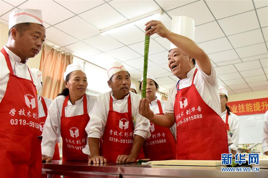 7月29日,在邢台市襄都区一职业技能培训基地,老师向学员展示切菜刀工。 新华社记者 朱旭东 摄