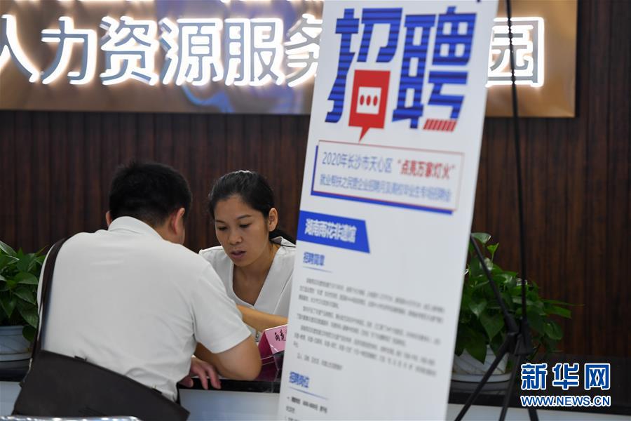 7月30日,在长沙人力资源服务产业园,用人单位工作人员和求职者沟通岗位信息。 新华社记者 陈泽国 摄
